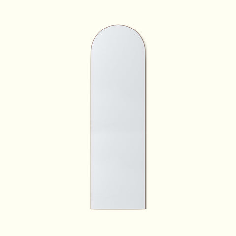 An arch mirror edged in a fine border of molten lead solder. Available in a black and copper patina.