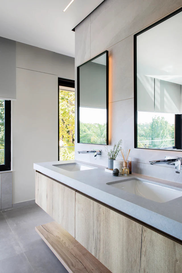 A square edge mirror wrapped in the seamless Arkivio DeepFrame. Available in all our powdercoat colours and solid precious metals.