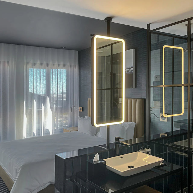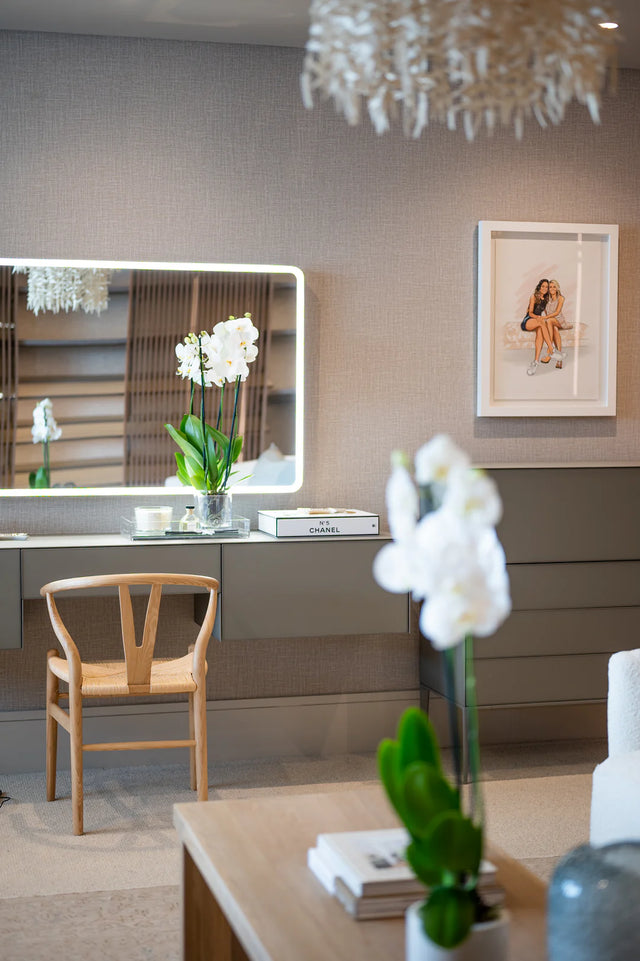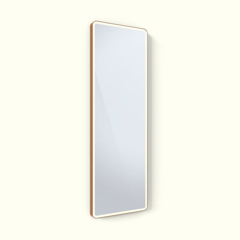 A soft edge mirror with a continuous illuminated border, wrapped in the seamless Arkivio DeepFrame. Available in all our powdercoat colours and solid precious metals.