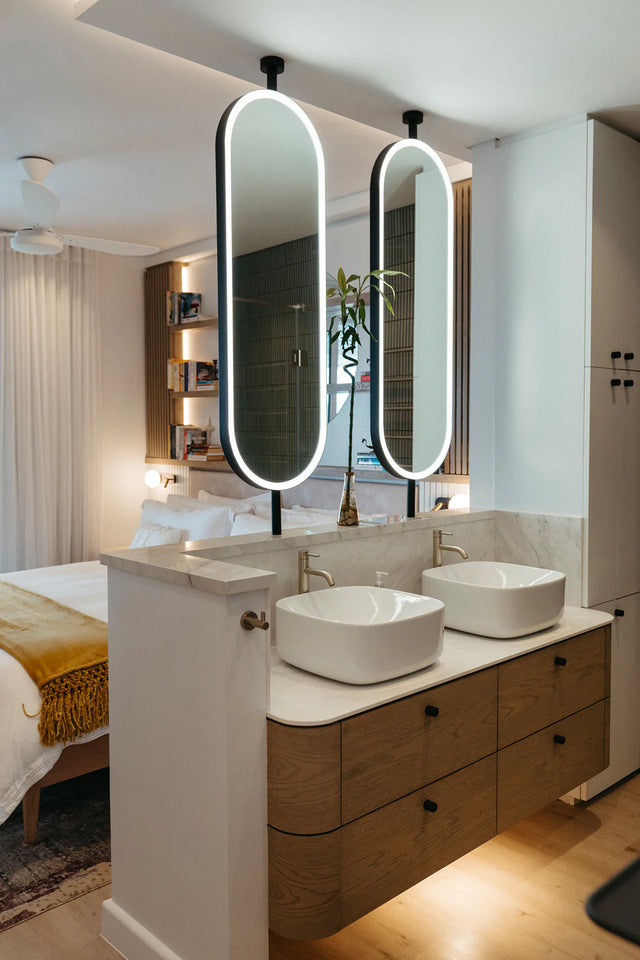 This customisable system allows you to place our mirror anywhere in a room without the need for a wall. The Pole-mount system can be used with any of our Deepframe shapes.